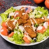 Salade, brick de fromage de chèvre chaud, oignons, tomates, jambon cru, sauce vinaigrette, miel
