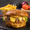 Bun frais, 4 steaks hachés de bœuf frais (180 g), bacon, 3 galettes de pomme de terre, cheddar maison, tomates confites, salade, oignons, sauce burger.